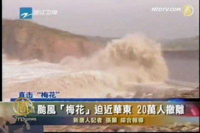 【新唐人2011年8月7日訊】8月6日,隨著颱風“梅花”強勢來襲,華東沿海地區20萬人緊急撤離,數航班取消,港口相繼關閉。核電事故的防範措施也在進行中。