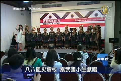 【新唐人亞太台2011年8月8日訊】八八風災兩年過去了,不少的重建區民眾,已經重新站了起來,其中,屏東泰武國小,也從被迫遷校,到現在有了新的校園,新的出發,今天泰武國小的學生,特別北上,用歌聲對那些曾經幫助他們的人說謝謝。