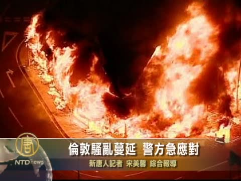【新唐人2011年8月9日訊】自從倫敦北部託特納姆區上星期六晚間發生騷亂以來,騷亂局面呈現蔓延的趨勢。星期一(8月8號),在倫敦多個地區出現打砸搶燒行為。為此,英國首相卡梅倫特別中斷休假,於週一夜間回到倫敦。