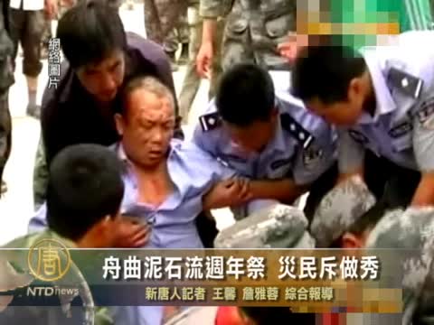 【新唐人2011年8月9日訊】中國甘肅舟曲縣特大泥石流災害已屆滿一週年,地方當局豎立災害紀念碑,在8號當天舉行悼念儀式,不過,有災民斥責政府搞悼念是做秀,勞民傷財。