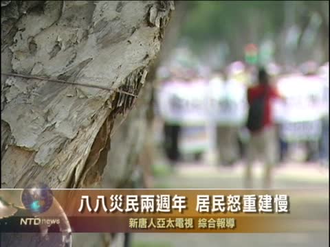 【新唐人2011年8月9日訊】8月8號是台灣八八水災滿兩週年的日子,來自高屏地區的原住民,當天早上到行政院抗議,不滿那瑪夏鄉、跟桃源鄉的聯外道路臺20線和臺21線,修復進度過於緩慢,請看報導。