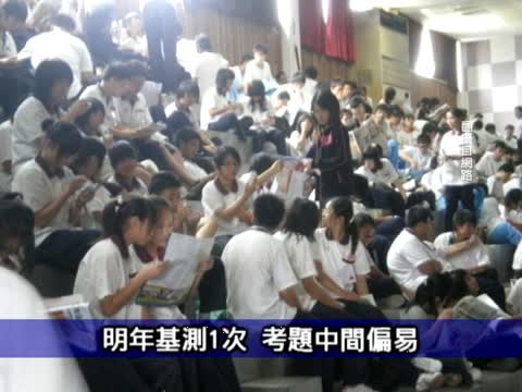因應十二年國教,教育部政策明年基測改為1次。基測出題單位台灣師大心測中心今天表 示,題型、難度和計分方式不會改變,以選擇題為主,難度是中間偏易。