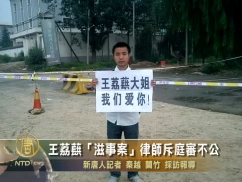 【新唐人2011年8月13日訊】中國著名維權人士王荔蕻被起訴「尋釁滋事」一案在北京8月12日在北京開審,王荔蕻的代表律師投訴庭審存在許多不公平情況,審判過程嚴重違法。