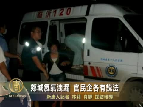 【新唐人2011年8月14日訊】11日晚山東臨沂郯城縣的山東陽煤恆通化工廠突發氯氣洩漏事故。不過對於氯氣洩露程度以及事故導致的中毒人數,民間、官方和企業卻各有說法。