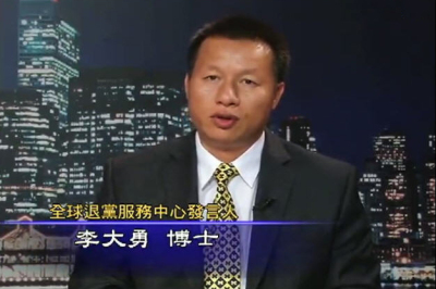 李大勇:三退的渠道啊,退出共產黨、共青團、少先隊這渠道很多啦,其實一個最主要的一個渠道啊,就是法輪功學員那通過面對面講真相來勸三退,那麼這種面對面講真相勸三退主要是在中國大陸,因為大陸啊我們知道有成千上萬的法輪功學員。那麼從《九評共產黨》發表六年期間,在這個中共暴政肆虐的情況下,在他們本身生活都處於一種危機這種情況下面臨著極大這種風險的情況下,他們做了六年多的勸退,所以這部分是最主要的。海外這部分是這樣子,幾乎在海外華人集中的地方都有我們這個退黨服務中心或退黨服務點,以這個紐約華人集中地法拉盛為例,我們大概有5退黨服務點。那麼中國城呀,還有些個碼頭上啊也有,還在歐洲的像埃菲爾鐵塔下面,在香港的一些主要景點,甚至主要景點就是一日游呀最後這個結束的那個地方,也都有我們的退黨服務點。可以說這種退黨服務點是遍及這個五大洲吧。有華人的地方,華人集中的地方其實都有退黨服務點。那麼還有一種渠道就是通過網絡的方式。通過交互式的網路上短訊的這個方式,就像Skype,或者像QQ呀,或像其它的,微軟的這些message呀,通過這種方式來勸退的這是一種,還有就是海外法輪功學員通過這個大量的向國內打電話,打到這個公安局呀,打到這個縣委呀,打到610辦公室呀,打到勞教所呀,打到這個居民所呀、地下室呀,打到這個部隊的、這些機關裏面去呀,打到國務院中央軍委呀、中央辦公廳呀都有。這也是非常主要的一種這個勸退的方式,那麼其他的我們還有一些熱線電話。所以您剛才說這個在所有這些渠道裏面退的最多的是哪一種渠道呢?退的最多的就是通過面對面講真相這種方式。就是國內的法輪功學員面對面講真相勸退的這個是最多的是嗎?對對對,因為這個勸退的人數最多,參與的這個勸三退講真相的學員也是最多。對,還有一個問題,就是,是不是所有這些勸退的渠道他最後勸退的這個人數,都最後要經過人工手動,就是把這個數據輸入到退黨網站裏面,才能形成就是最後我們看到的這個在大紀元上發表的退黨聲明,是,我們是這麼希望的。《九評共產黨》發表以後啊,大紀元曾經專門發了個鄭重聲明,那個聲明那非常嚴肅的就是嚴正的指出,中共啊因為所作的邪惡的這些事情一定會被神所清算的,那麼當有一天就是要清算中共的時候,就大紀元這個退黨網站上的登記啊,這個記錄啊,可以為他做證。所以說從這個角度說,我們是希望每一條這個退黨聲明那都能夠錄入進大紀元退黨中心網上這個數據庫裏面去。