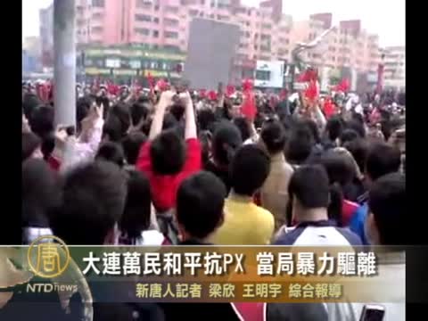 【新唐人2011年8月15日訊】遼寧省大連市14號爆發數萬人上街抗議之後,地方當局表示,將遷走引起民憤的福佳大化PX化工廠。不過,當地仍有不少特警處於戒備狀態。網上也傳出前一晚,大批防爆警察暴力執法和民眾高喊警察打人的視頻。