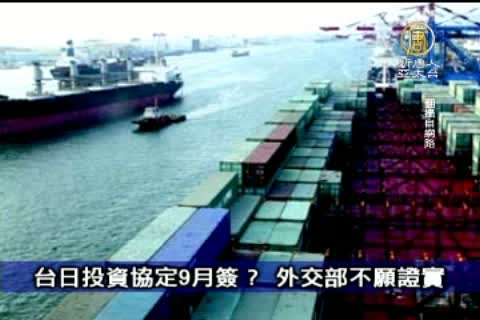 根據日本「產經新聞」的報導,有關台、日雙邊投資待遇的「台日民間投資協定」,預定將於9月由亞東關係協會與日本交流協會共同完成簽署。對此,外交部官 員相當低調,拒絕證實簽署時間,也不願透露協定內容。