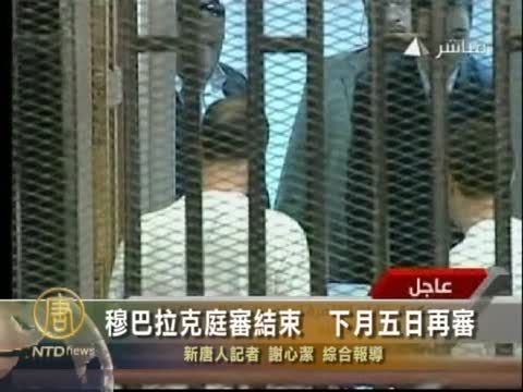 【新唐人2011年8月15日訊】星期一(8月15日),埃及前總統穆巴拉克(Hosni Mubarak)再次出庭受審,目前庭審已經結束,法庭宣佈下次開庭時間為9月5日。