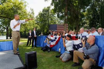 他說美國當前的最大挑戰,是降低超過9%的失業率,讓人們有工作,但有國會議員置美國利益於不顧,只關心讓競爭對手失敗。