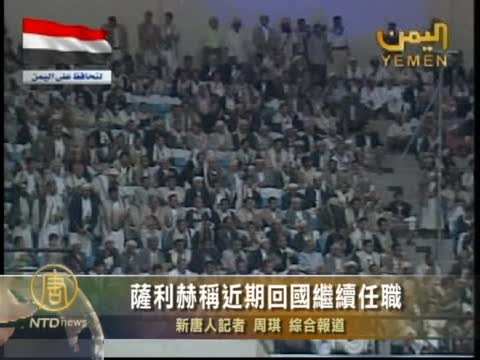 【新唐人2011年8月17日訊】正在沙特療傷的也門總統薩利赫星期二發表電視講話,稱將於近期回國,將繼續擔任總統一職,至少呆到2013年大選。