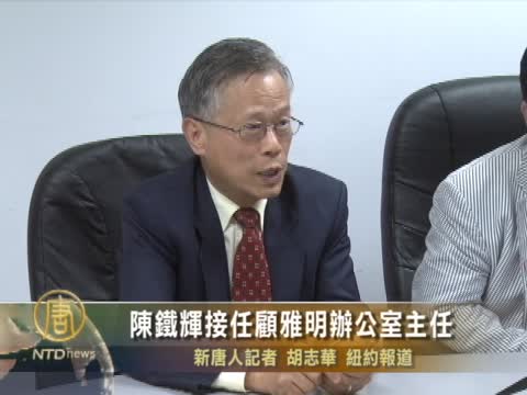 【新唐人2011年8月17日訊】紐約市議員顧雅明今天(8月16日)下午在選區辦公室,介紹由活躍在法拉盛社區多年的陳鐵輝(Thomas Chen),擔任新的選區辦公室主任。請看報導。