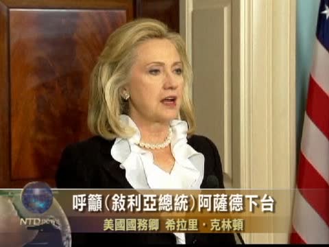 【新唐人2011年8月18日訊】8月18號(星期四),美國國務卿希拉里•克林頓正式宣佈,美國要求敘利亞總統阿薩德下臺。