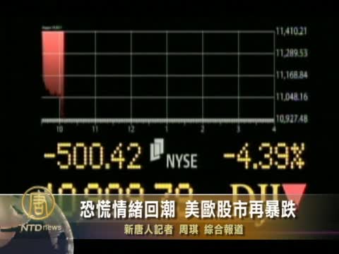 【新唐人2011年8月19日訊】由於擔心美國經濟可能再陷衰退和歐洲主權債務危機風險外溢,市場恐慌情緒回潮。8月18號(週四)美國股市開盤出現大幅下跌,歐股也遭受了自2009年3月以來最大跌幅。