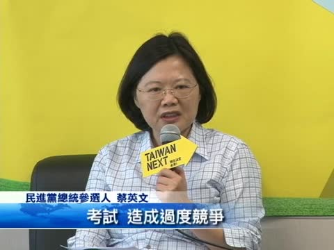 民進黨總統參選人蔡英文:「考試,造成過度競爭,那過度競爭的結果就造成學生被