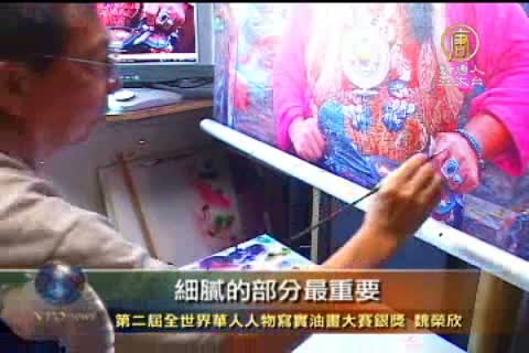 【新唐人亞太台2011年8月20日訊】從小對畫畫就很有興趣的素人畫家魏榮欣,非常認同本台所舉辦的全世界華人人物寫實油畫大賽,連續兩屆參賽並獲得銀獎肯定,透過我們的新聞鏡頭,魏榮欣向我們分享了如何才能創作出一幅好的人物寫實油畫,以及到美國參加新唐人大賽的收穫。