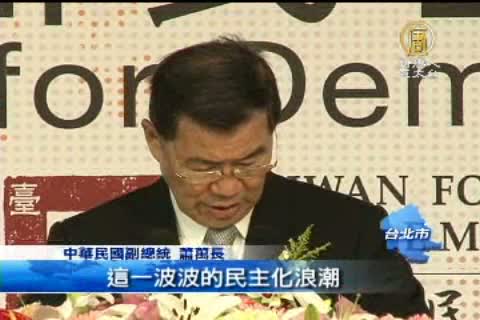 【新唐人亞太台2011年8月22日訊】副總統蕭萬長今天出席「亞洲民主大會」,向場內200多位國際人士表示,中華民國建國百年,以民主成就最值得欣慰,並說台灣民主試驗成功,對兩岸以及世界的意義就越重大。
