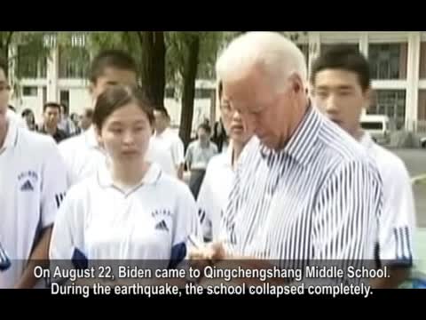 美國副總統拜登的中國之行,最後一站選擇了曾經經歷大地震的四川。22號,拜登來到都江堰市的「青城山中學」。三年前的大地震中,這所學校的校舍垮塌,重建時,美國NBA援建了五個籃球場。