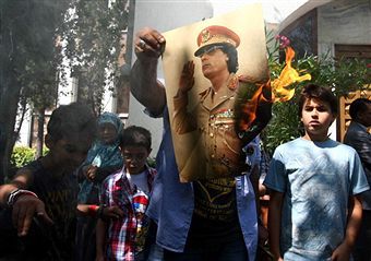 成千上萬的黎波里民眾歡呼雀躍的慶祝自由,他們已將市中心綠色廣場改名為烈士廣場。興高采烈的利比亞民眾撕下卡扎菲的畫像、踩在腳下,有些人焚燒卡扎菲政府的綠色旗幟。