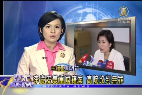 【新唐人亞太台2011年8月23日訊】針對李慶安的雙重國籍案,高等法院今天(23日)宣布改判無罪。法官表示,市議會及立法院,有依法查明公職人員是否具有雙重國籍的責任,但卻未履行。加上檢方提出的證據不足,因而改判無罪。對此,有律師認為,李慶安身為民意代表,應明白民代規定,他認為此判決可能引發後續的司法爭議。