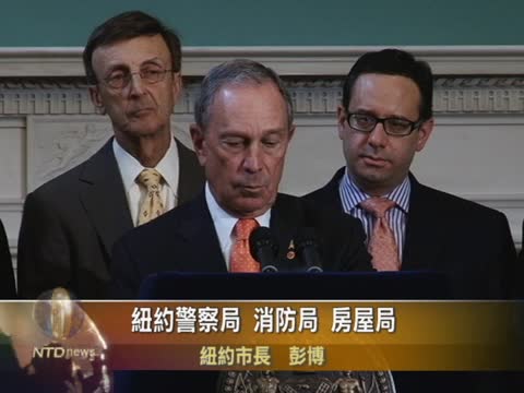 紐約市長彭博帶領紐約警察局長、消防局長、突發事件管理局長、房屋局長、交通局長、和教育局長等人召開記者會。