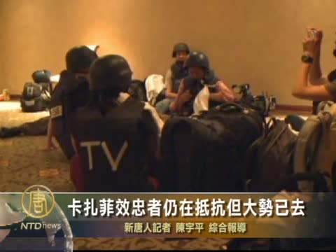 【新唐人2011年8月25日訊】首先我們來看一下利比亞最新局勢,利比亞反叛武裝在攻佔卡扎菲大本營一天之後,星期三仍在同效忠卡扎菲的武裝分子在的黎波里交戰,卡扎菲目前仍去向不明,與此同時反對派成立的全國過渡委員會已經獲得了國際認可,卡扎菲可以說是大勢已去。