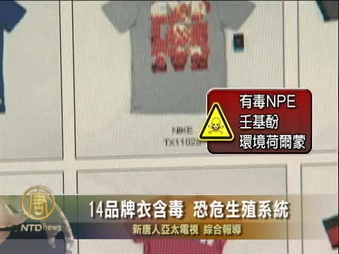 【新唐人2011年8月26日訊】您穿的衣服安全嗎?國際環保組織綠色和平公布了一份調查報告,發現有14個品牌,52件衣服檢驗出殘留有毒化學物質NPE,包括NIKE、adidas、日本平價衣UNIQLO都在其中,毒物專家說,每天接觸過量,會危害生殖系統。
