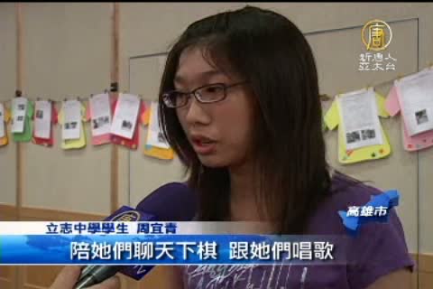 立志中學學生 周宜青:「其實一開始走進去的時候,我看到那些坐在輪椅上的老人,就是看到插著鼻咽管,剛開始看到非常害怕、很恐懼,但是在志工媽媽的領導之下,慢慢的我會餵她們吃東西,陪她們聊天、下棋,跟她們唱歌,做一些團康活動。」