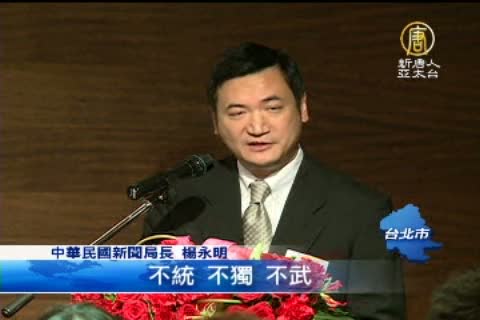 台灣新聞局長 楊永明:「馬總統執政以來,依循中華民國憲法的架構下,對兩岸關係主張:不統、不獨、不武,這是他對兩岸關係的三不政策。」