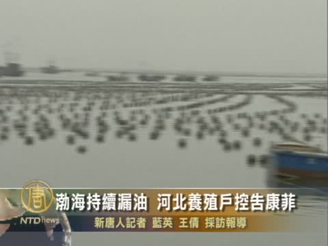 【新唐人2011年8月26日訊】中國渤海灣漏油事故至今未平息,被發現多處漏油點,持續污染海水,兩個多月來,沿岸養殖戶已造成巨大損失,河北近200家養殖戶,日前委託北京盈科律師事務所控告康菲中國公司。