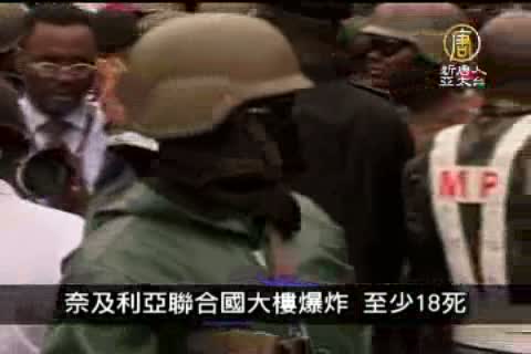 位於奈及利亞首都阿布加的聯合國機構大樓8月26日發生爆炸,目擊者指出有數名罹難者屍體從事發現場被抬出。官方證實至少超過18人死亡,8受傷。聯合國秘書長潘基文對致命的爆炸事件表示強烈譴責,稱這是一個「可怕的行為」, 並向遇難者家屬表示哀悼。