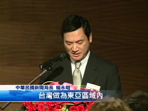 台灣新聞局長楊永明:「台灣做為東亞區域內負責任的成員之一,在維繫區域和平與促進區域間民主化,起到良好的示範作用。」