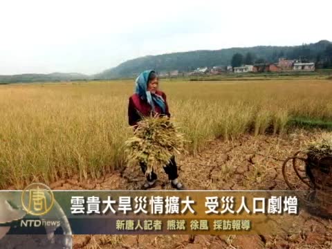 【新唐人2011年8月29日訊】中國雲南貴州兩省旱災持續擴大,受災人口增至六百多萬人,主要農作物稻谷、玉米、土豆大面積絕收,災區農民指出,今年旱災比去年更嚴重,吃水都靠自救,對災民的救濟都被當地官員貪污。