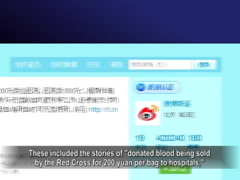 新浪在26號首次以系統通知的方式,向旗下的微博用戶發出所謂的“闢謠公告”,認為有些信息「說法不實」。例如:“無償獻血被紅十字會以一袋200元賣給醫院”,和“十九歲少女在武漢被殺害,嫌犯被有權勢的父親保釋在外”。