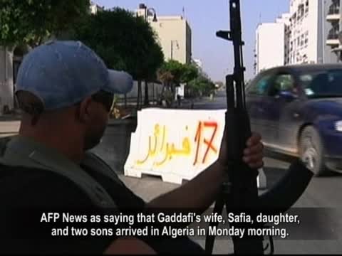 利比亞反抗軍依然還沒有搜查到卡扎菲的影蹤,不過,《法新社》引述阿爾及利亞外交部發表的聲明說,卡扎菲的妻子索菲婭在女兒和兩個兒子的陪同下,於當地時間週一早晨8點45分抵達。利比亞反對派「全國過渡委員會」表示,將爭取引渡這一家人,讓他們接受審判。