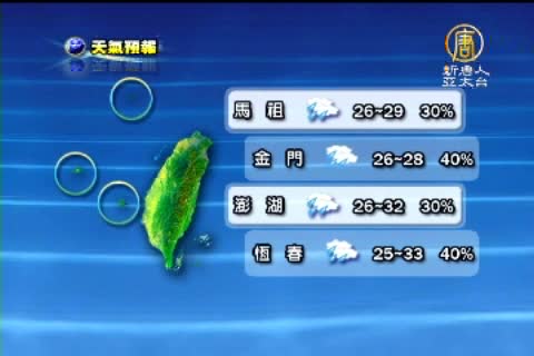 【新唐人亞太台2011年9月1日訊】由於對流雲系減弱,氣象局晚間解除大雨特報,不過提醒您,明日午後東北部、東部、東南部地區、北部山區仍可能有較大雨勢發生。以下帶您關心9月2號星期五,全台各地以及世界各主要城市的天氣預報。