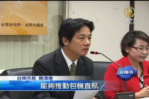 【新唐人亞太台2011年9月1日訊】台南機場的國際及兩岸包機直航將在9月啟動,台南市長賴清德今天(31號)主持記者會,宣布9月17號將「首航」日本石川縣小松機場,而國民黨立委爭取的包機首航大陸廈門,則是在9月8日市府爭取的首航之前,賴清德表示,不看政黨,只要能爭取直航,市府都非常歡迎。