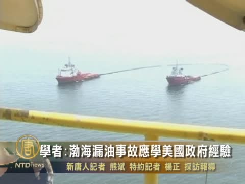 【新唐人2011年9月1日訊】中國渤海灣油田漏油事故發生近三個月來,康菲公司近日宣稱滲油點已得到控制遭到質疑,大陸學者指出,康菲公司防堵漏油不力,政府應借鏡美國政府處理墨西哥灣漏油事故的態度,積極的介入防堵漏油和進行清污。