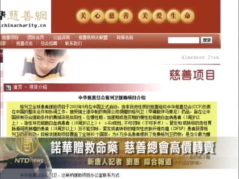 【新唐人2011年9月2日訊】8月30號,網友在微博爆料,中華慈善總會將瑞士諾華公司免費提供給慢性白血病患者的保命藥,以每盒兩萬五千元的價格賣給患者。儘管中華慈善總會趕緊出面闢謠,然而據患者及家屬反映,這種現象在中國一直存在。