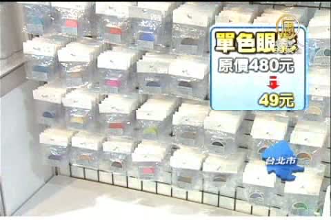 除了保養的面膜類,架上這一排排的單色眼影,原價480現在49元就可以帶回家。