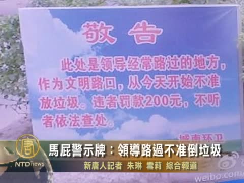 【新唐人2011年9月3日訊】近日來,一塊為了拍領導馬屁,不准百姓倒垃圾的警示牌引起了網友的熱議。下面讓我們來看看雪莉的報導。