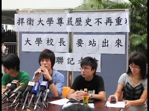 香港理工大學學生黃佳鑫:「因為他們當日其實全部都在陸佑堂裏面參與這場活動,正是這件事的持份者之一,所以我們認為他們無論是站在大學校長的角色,或是當場參與者的角色,或是香港市民的一員都好,他們絕對對這立場聲明是責無旁貸的。」