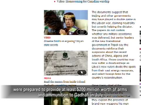《紐約時報》週日也報導說,利比亞過渡委員會官員週日表示,據一名加拿大記者找到的卡扎菲政權的文件,在利比亞反對派和卡扎菲作戰的最後時期,利比亞秘密情報官員在7月16號訪問北京時,與「中國北方工業集團」、「中國精密機械進出口公司」和「中國新興進出口公司」的官員舉行了會面。這些公司表示願意提供價值2億美元的火箭發射器、反坦克導彈、QW-18地對空導彈以及其他武器和彈藥。