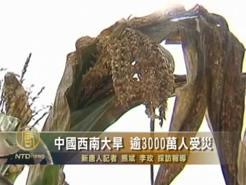 【新唐人2011年9月7日訊】中國西南大旱持續擴大,除貴州、雲南外,四川也出現災情,農作物大面積絕收,三省受災人口合計已超過3000萬人,尤其是山區飲水困難。災民表示,政府大力修建水電站賺錢,忽略了農業灌溉,人禍更加劇了災情。