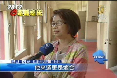 【新唐人亞太台2011年9月9日訊】在蘇貞昌拒絕擔任副手後,最後確定由秘書長蘇嘉全出線,面對最新出爐的英嘉配,有人不評論,有人是希望來場君子之爭,那麼兩黨立委怎麼看?聽聽他們看蘇嘉全出任小英副手,對選情的評估。