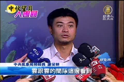 【新唐人亞太台2011年9月12日訊】新聞一開始,帶您來看到,今天(12日)晚上是中秋夜,不過北部、東半部由於受到對流雲系影響,不但民眾可能只能從雲縫間賞月,還可能得冒雨烤肉,而且提醒您,目前還有個熱低壓,正朝台灣而來,可能發展為今年的第15號颱風。