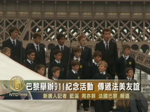 【新唐人2011年9月12日訊】10年前在紐約經歷了911事件的四位駐美法國企業家,成立了稱為“法國人從未忘記”的協會,經過9個月的準備,在巴黎埃菲爾鐵塔前的人權廣場上,舉行了世貿雙塔被擊10年紀念活動,立志於加強和繼續法美之間的友誼。