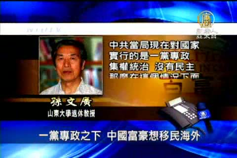 【新唐人亞太台2011年9月13日訊】越來越多的中國富人想要移民到海外,除了想要他們的子女獲得更好的教育,或者能夠享受更好的醫療系統外,主要原因是在中國一黨專政的體制下,他們擔心自己的財產安全出問題。