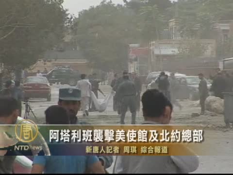 【新唐人2011年9月14日訊】星期二(9月13日),塔利班武裝分子襲擊了阿富汗首都喀布爾市中心的一系列目標,其中包括美國駐阿使館、北約聯軍總部及阿富汗情報機構,造成至少9人喪生,23人受傷。隨後北約聯軍及阿富汗安全部隊與武裝分子爆發了激烈槍戰,直到晚間還在繼續。