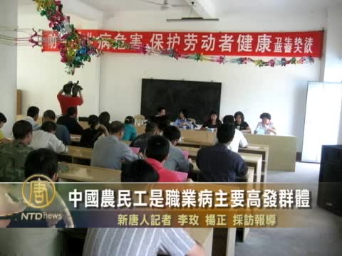 【新唐人2011年9月15日訊】近年來,中國外出務工農民職業病事件頻發,目前,中國企業參與體檢的很少,職業病瞞報的情況嚴重,大陸學者指出,中國農民工是職業病主要高發群體,應該加強農民工的職業病預防知識,並加大力度監管,促進企業的社會責任感。