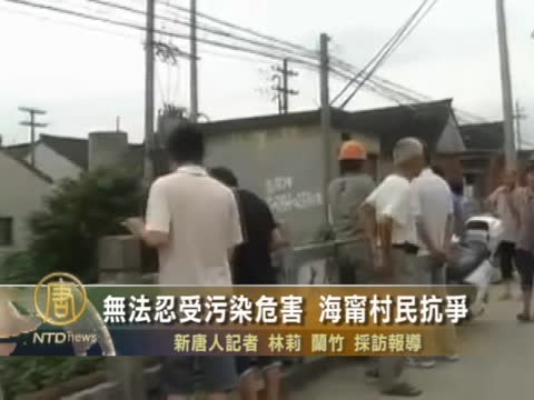 【新唐人2011年9月16日訊】位於浙江海寧市的浙江晶科能源公司門前,15號出現上百個抗議居民,他們因為無法繼續忍受晶科長期污染當地環境,要求公司停產搬家,由於沒得到善意回應,憤怒的村民將公司的大鐵門砸壞,並掀翻了一輛汽車。